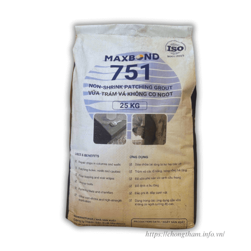 Đổ 4 lít nước sạch vào thùng chứa sau đó đổ từ từ đổ bột Maxbond 751 vào, dùng máy khuấy tốc độ chậm khuấy đều để nước và bột hòa quyện vào nhau. Thêm 0.25 lít nước còn lại vào hỗn hợp để điều chỉnh độ sệt. Khuấy đều trong vòng 3 phút để tạo thành hỗn hợp đồng nhất không vón cục.