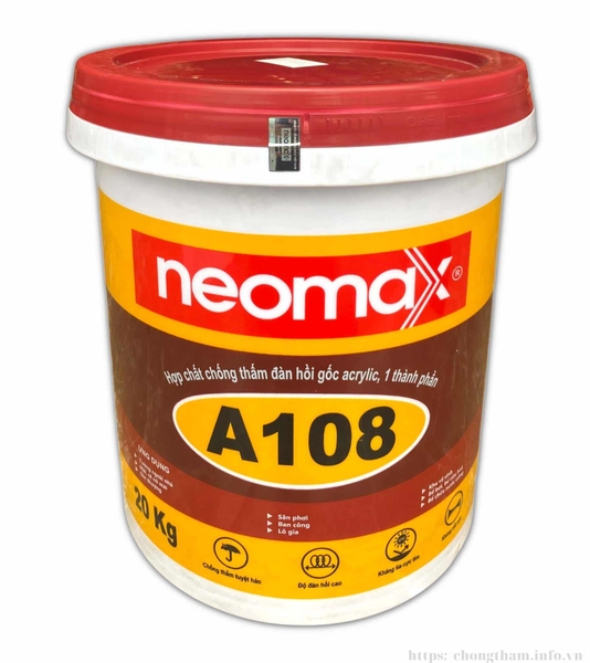 - Neomax A108 là hợp chất chống thấm đàn hồi, 100% nhựa acrylic đa tính năng, gốc nước, 1 thành phần;