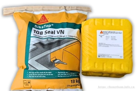 - SikaTop 108 Seal VN là vữa chống thấm và bảo vệ đàn hồi 2 thành phần gốc xi măng - polymer cải tiến, có SỢI GIA CƯỜNG, khả năng phủ vết nứt tốt.